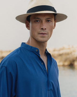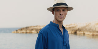 Ultra-Light Cotton Voile Nightshirt - Striped - Powder Blue and Taupe