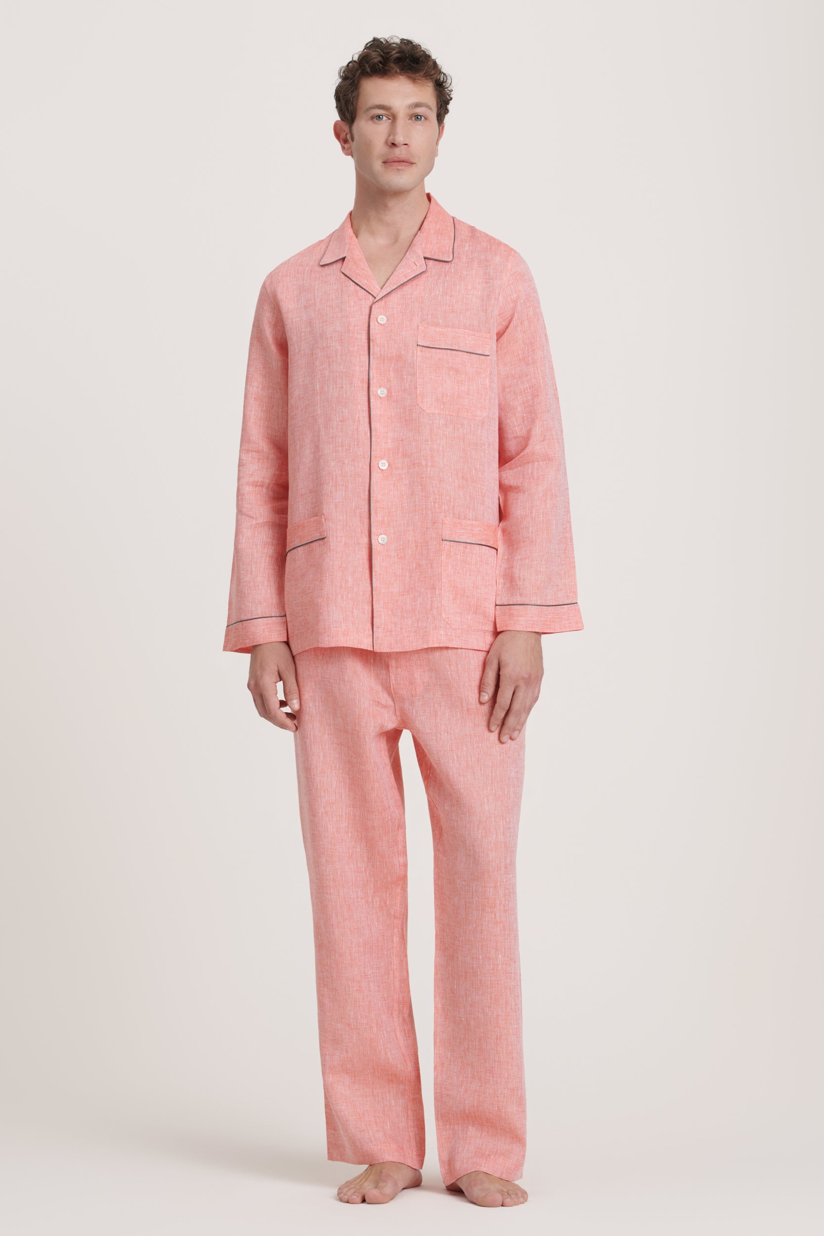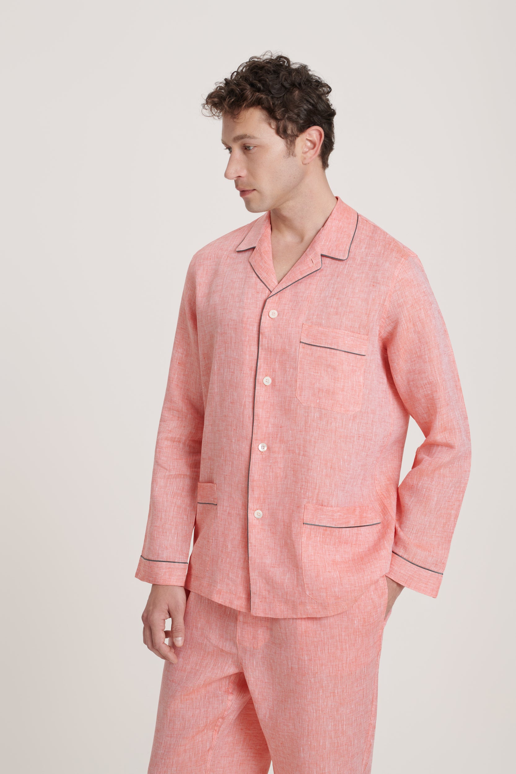 A color that brings energy without shouting — this tangerine linen has a warm, inviting brightness that feels instantly uplifting. The fabric keeps its natural coolness and light texture, making it easy to wear from the first moment and even better with time. Simple, confident, and full of charm, it’s a pajama that adds a little spark to the everyday.