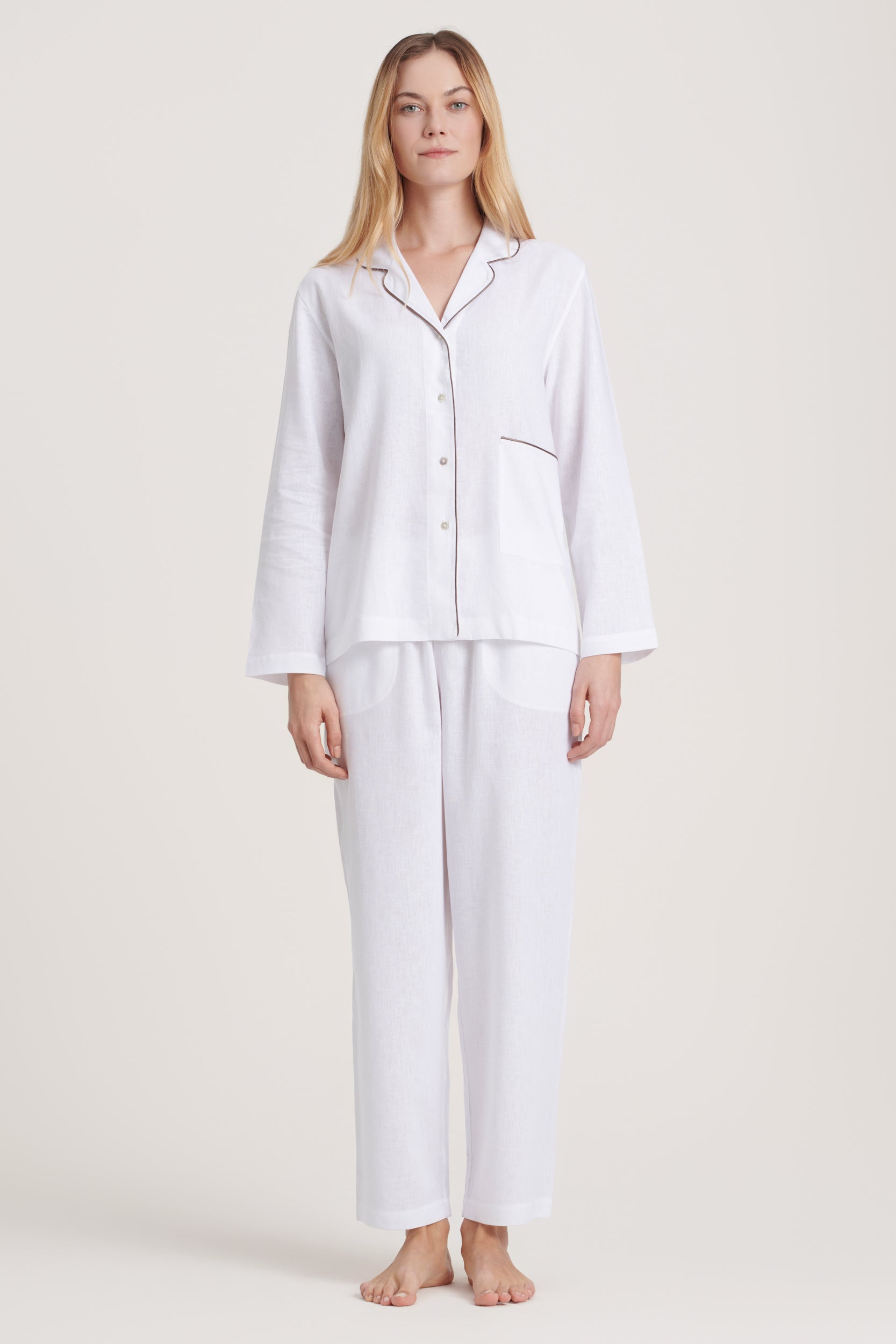 Linen-Bamboo Pajama Set - Pure White