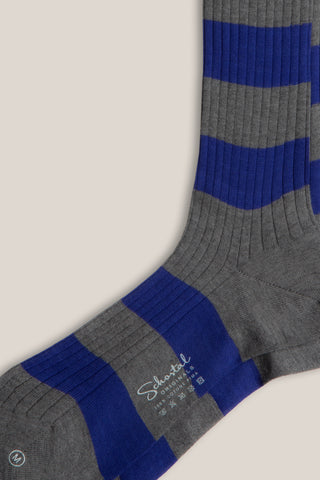 Striped Pima Cotton Ribbed Socks - Extended Mid-Calf - Gray & Royal blue