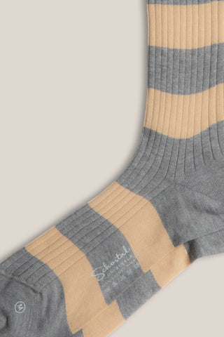 Striped Pima Cotton Ribbed Socks - Extended Mid-Calf - Light Gray & Ivory