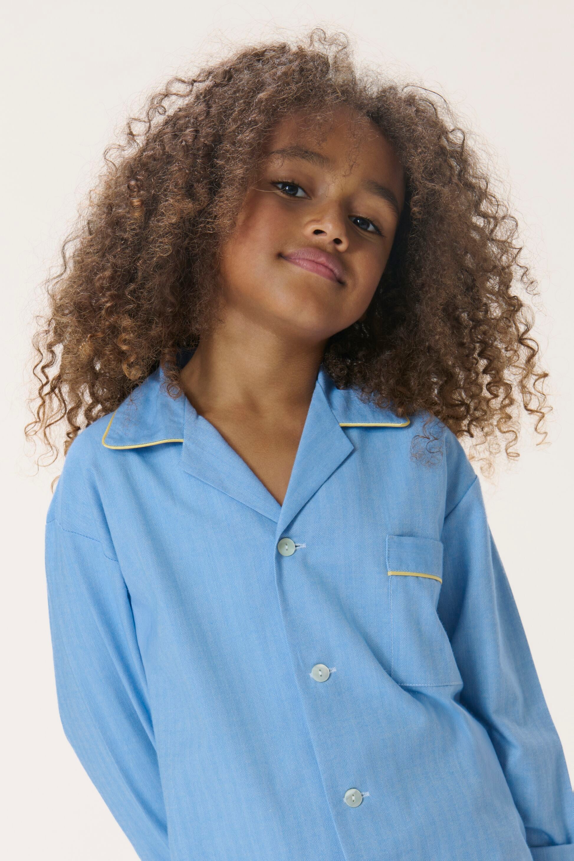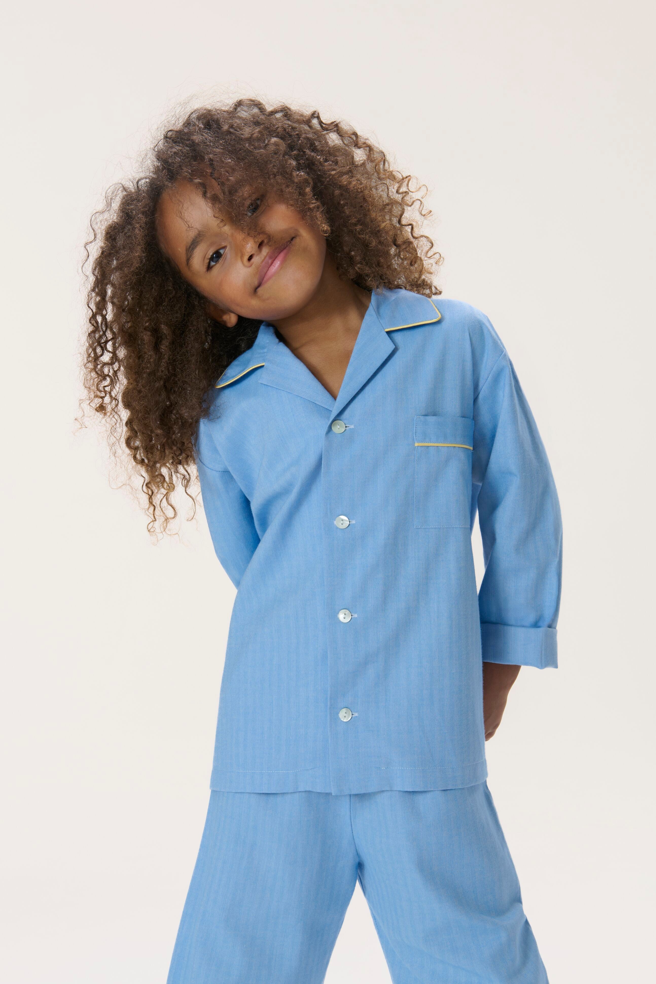 Soft cotton meets subtle herringbone in this cozy pajama set. With its classic style and easy fit, it’s perfect for little ones to unwind and dream big.