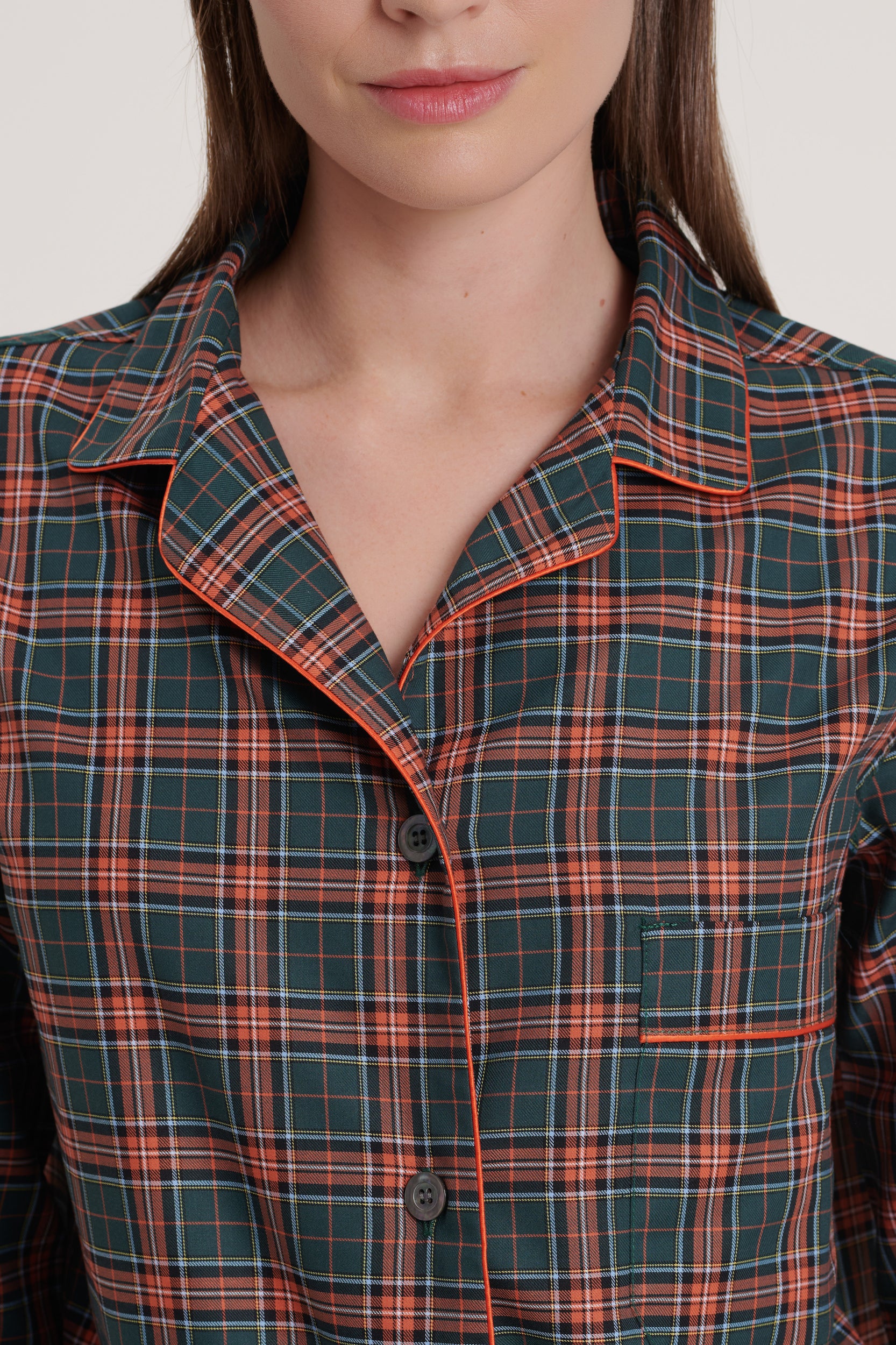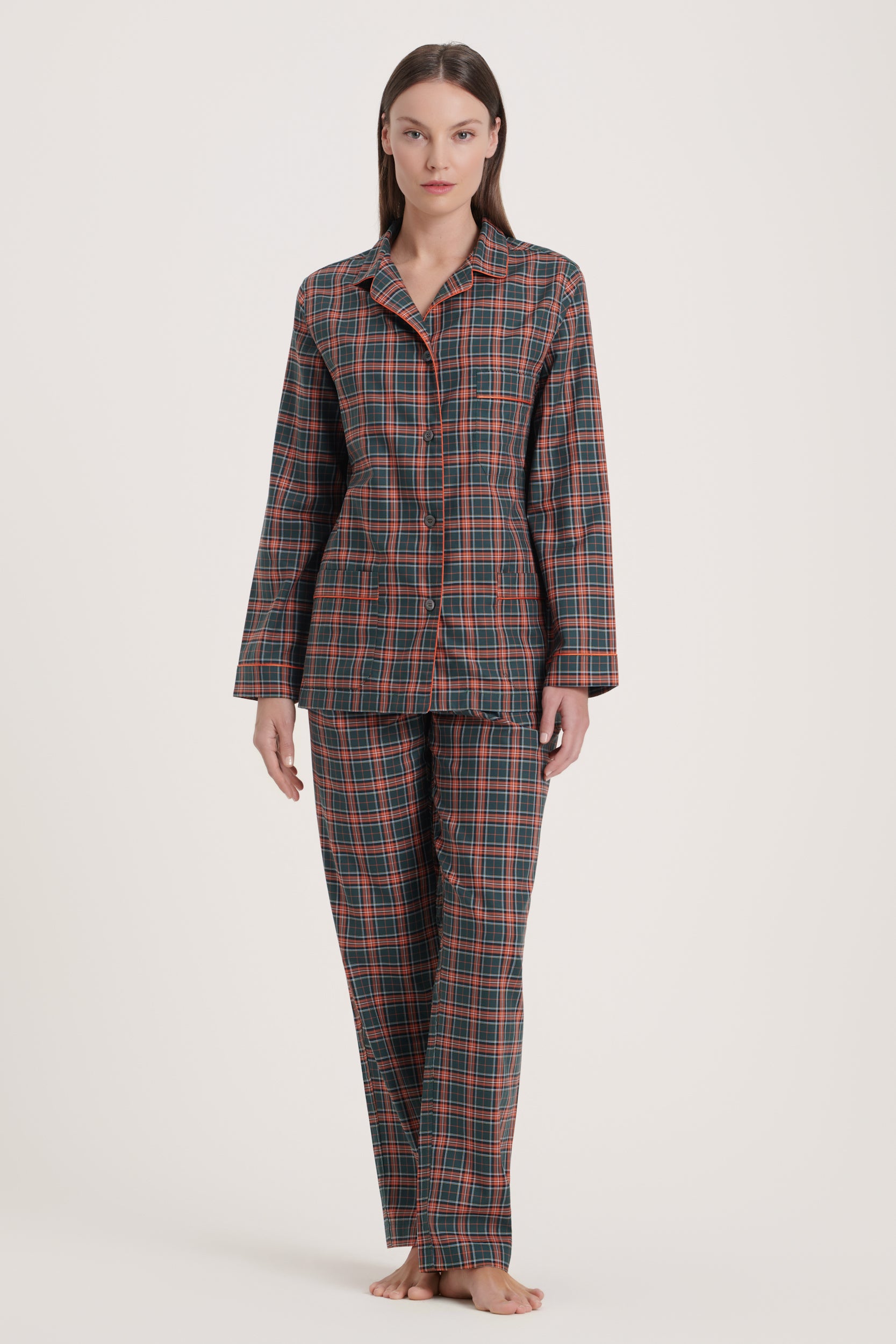 Cotton Pajama Set - Plaid - Forest Green and Tangerine