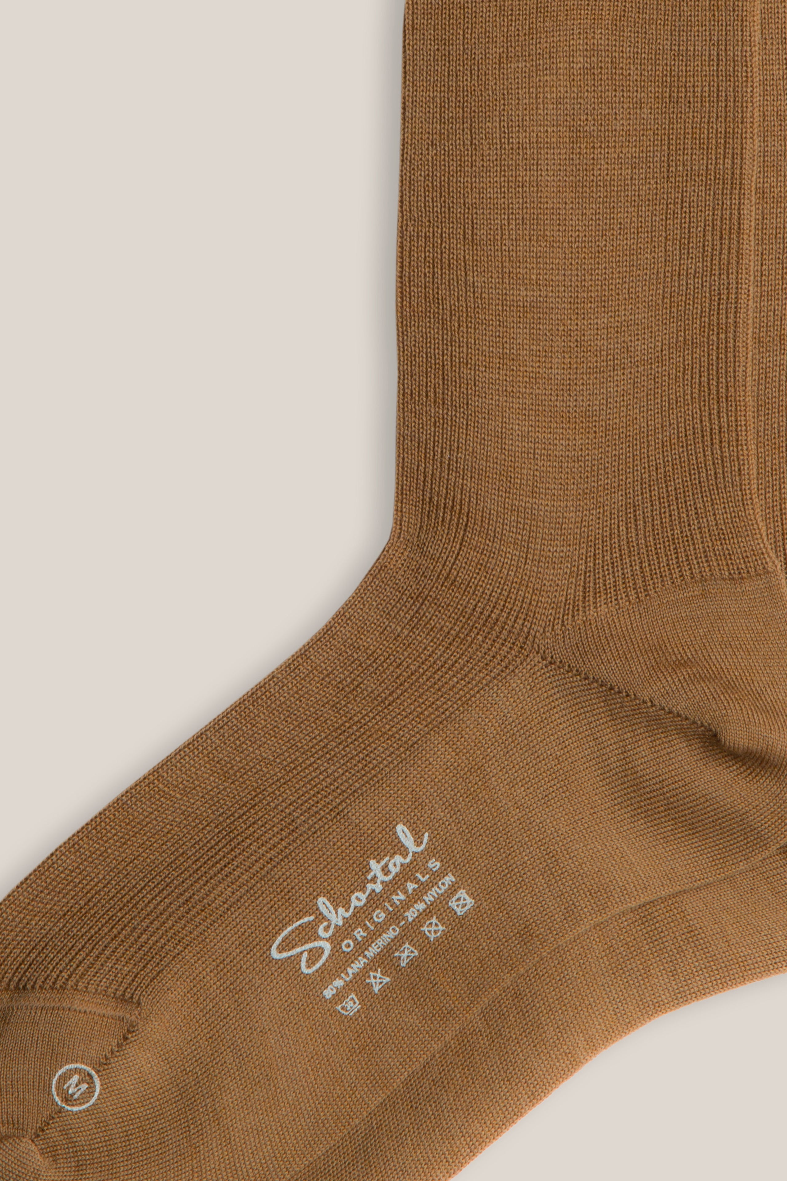 Merino Wool Gentle Ribbed Socks - Mid-Calf - Tobacco Brown