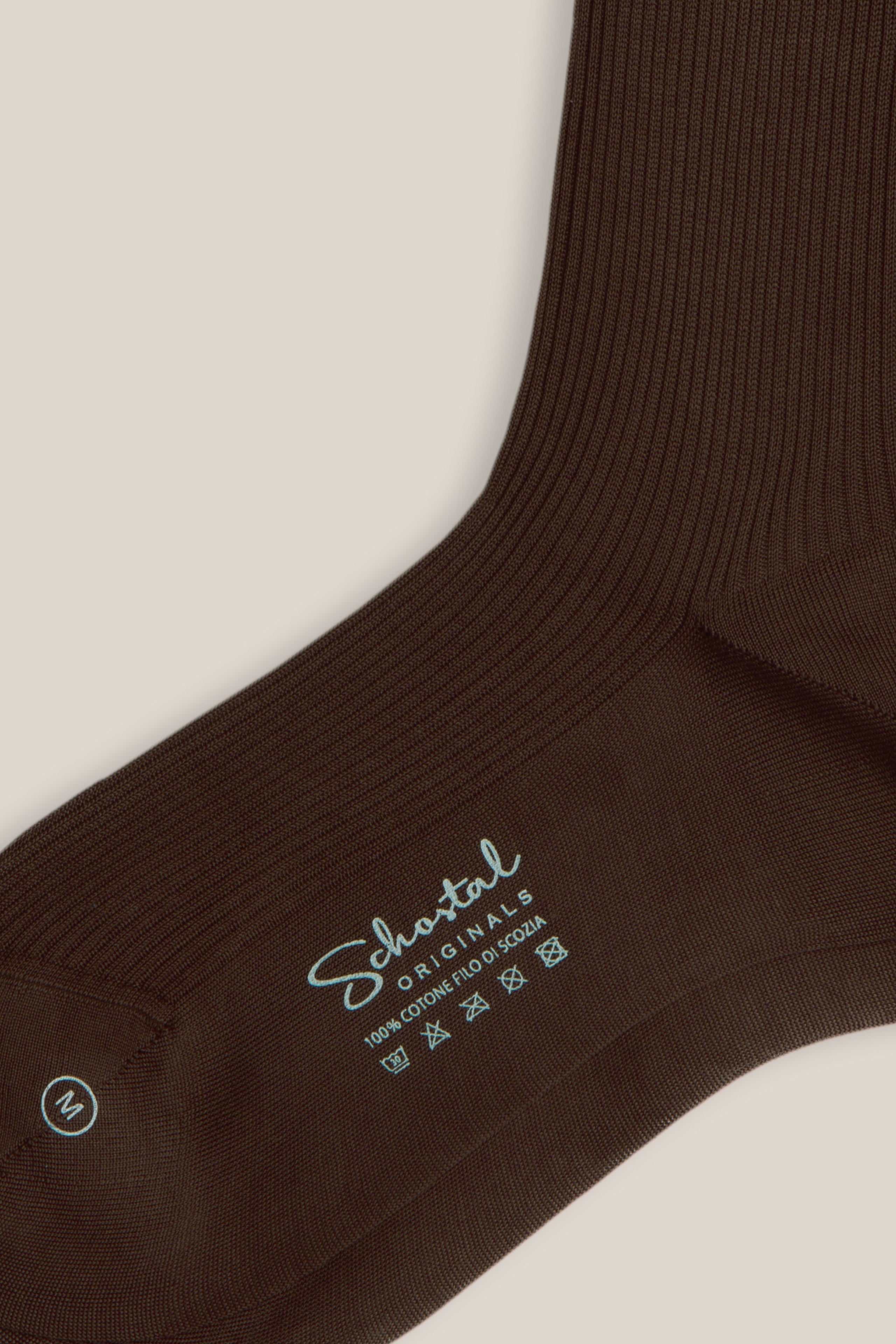 Cotton Lisle Gentle Ribbed Mid-Calf Socks-Cocoa brown