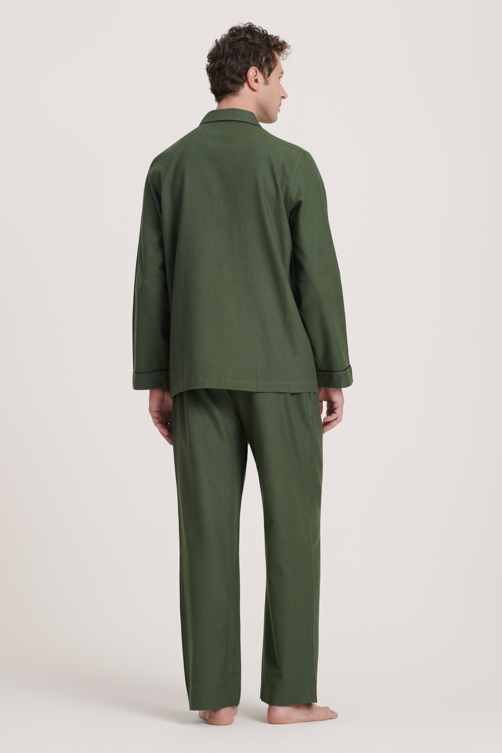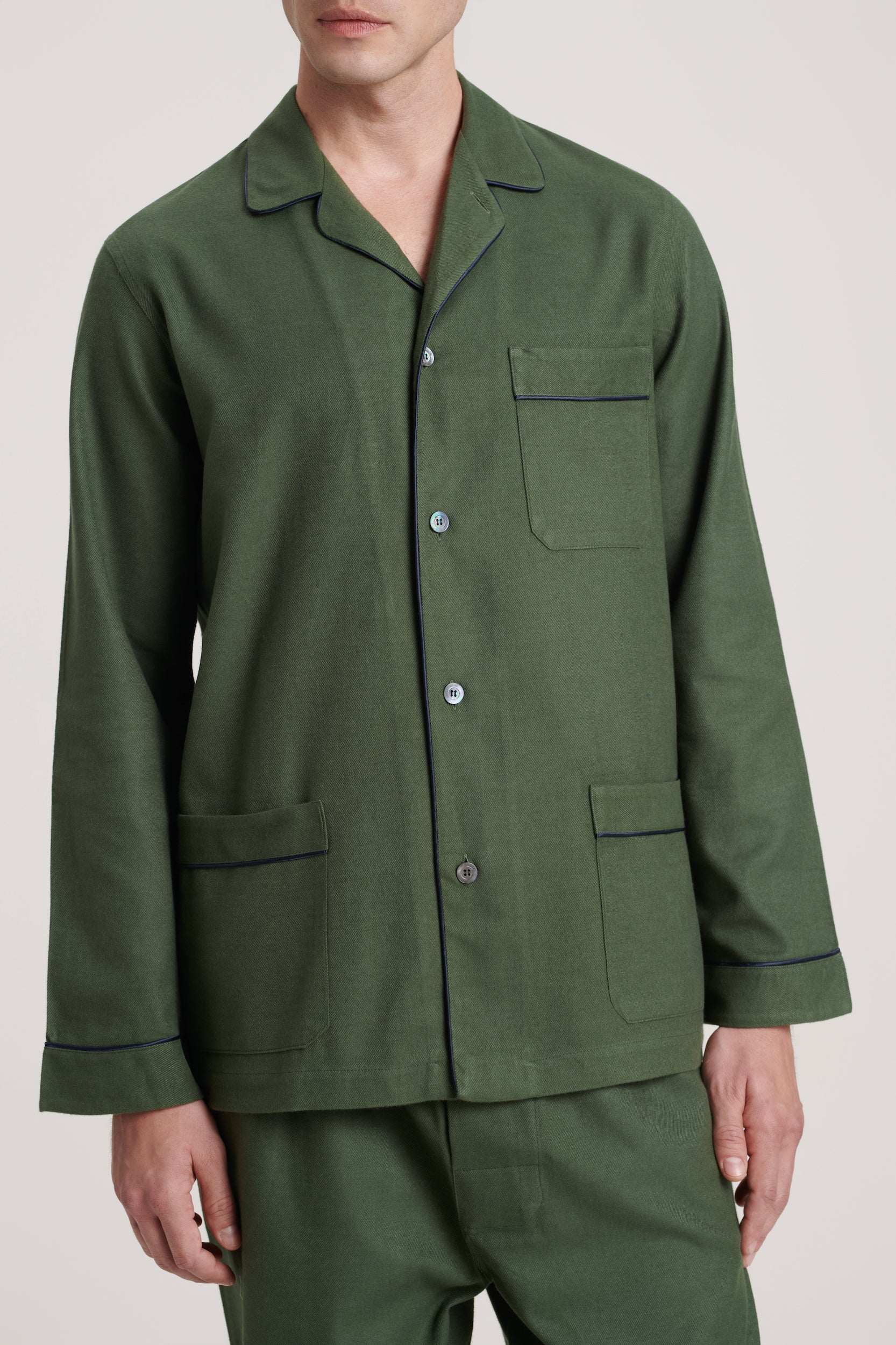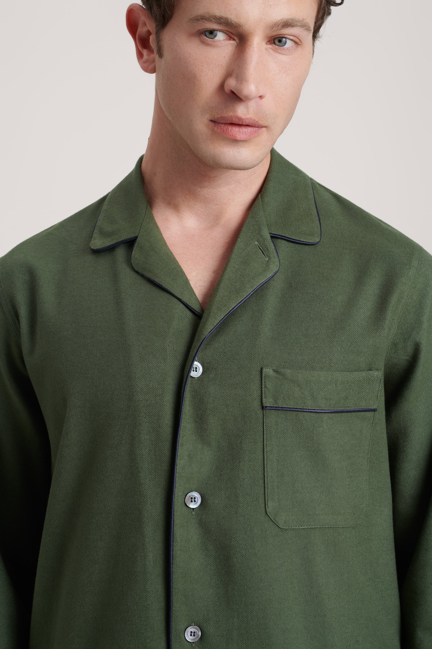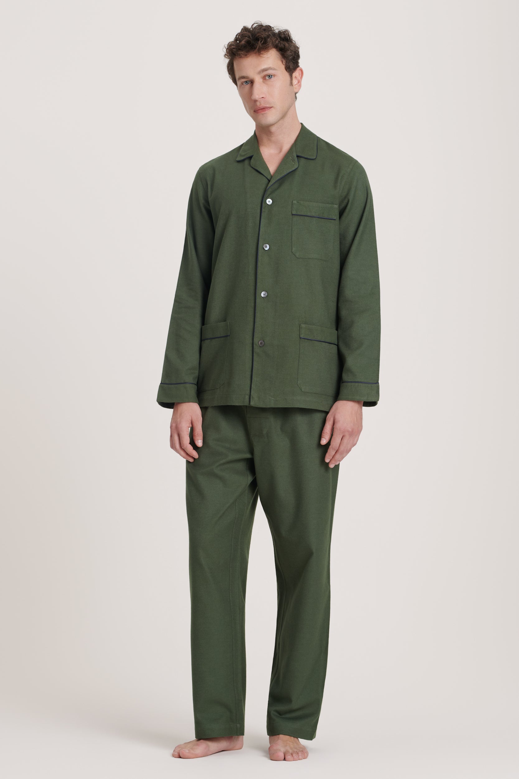 A grounded, quietly rich tone — this moss-green flannel brings a natural warmth and depth that feels immediately inviting. The premium cotton offers a soft, comfortable weight with a smooth touch, making it an easy companion for slower moments and everyday rituals alike. Understated, warm, and effortlessly put together, it’s a pajama with a calm confidence of its own.