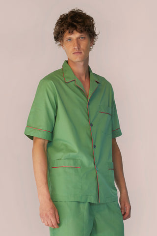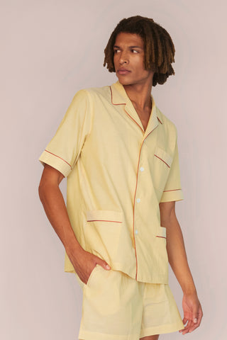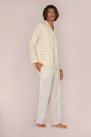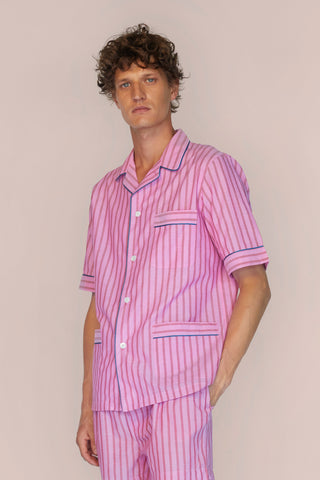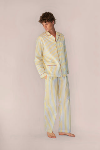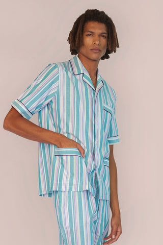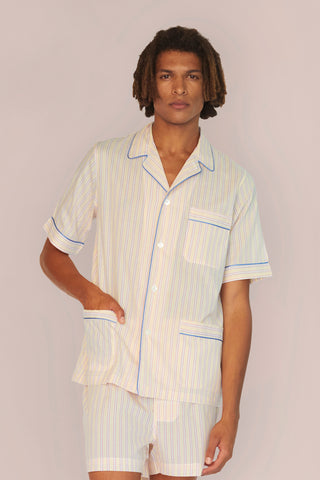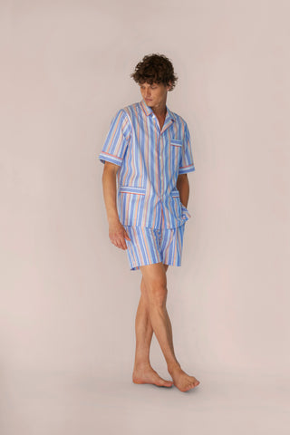 Ultra-Light Short Cotton Pajama Set - Striped - Blue, Red and Orange