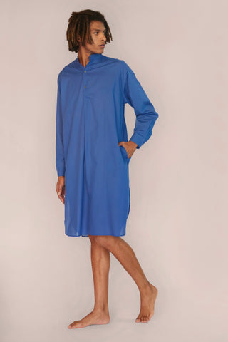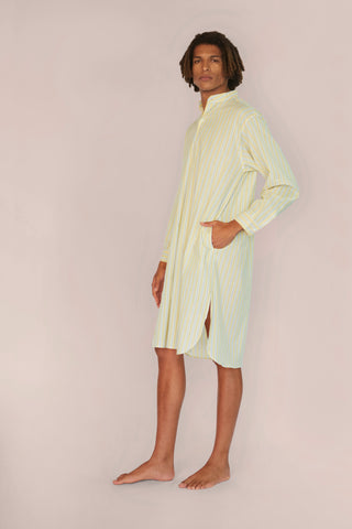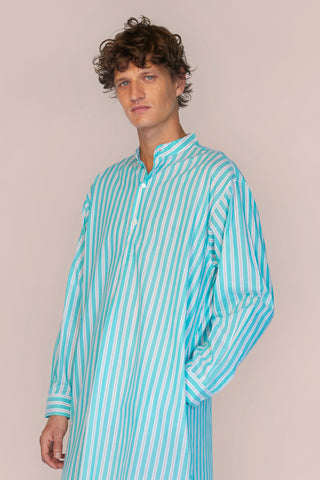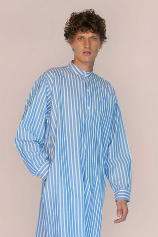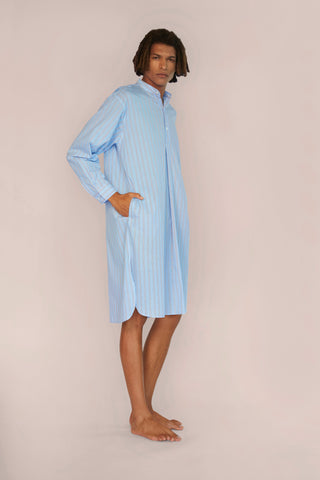 Ultra-Light Cotton Voile Nightshirt - Striped - Powder Blue and Taupe