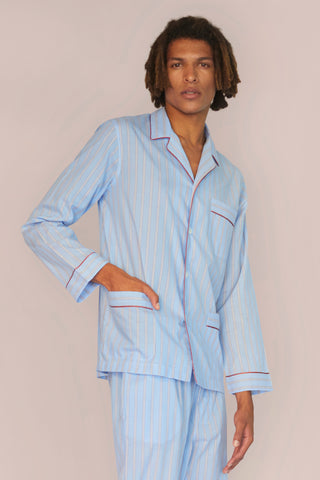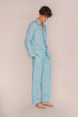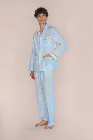 Ultra-Light Cotton Pajama Set - Striped - Powder Blue