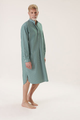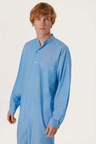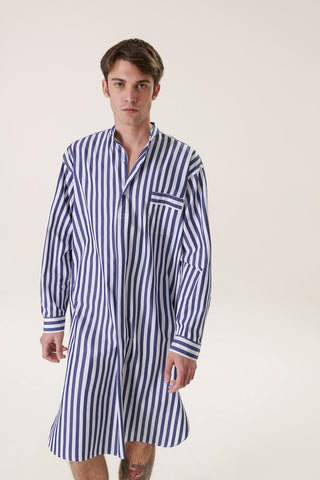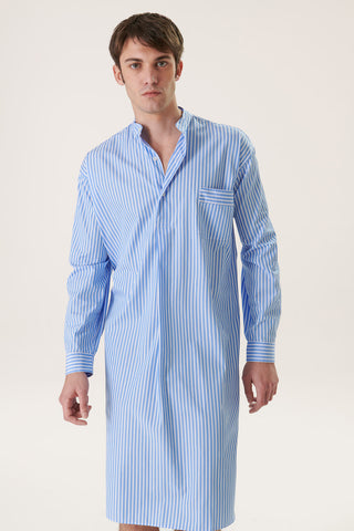 Ultra-Light Cotton Voile Nightshirt - Striped - Powder Blue and Taupe