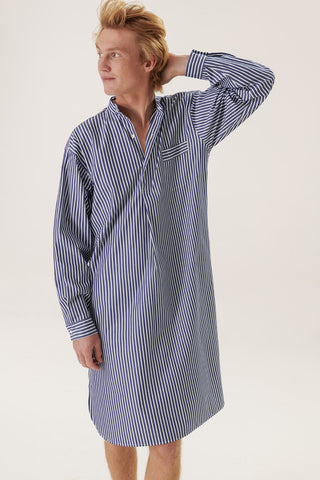 Ultra-Light Cotton Voile Nightshirt - Pinstriped - Cocoa Taupe and Navy