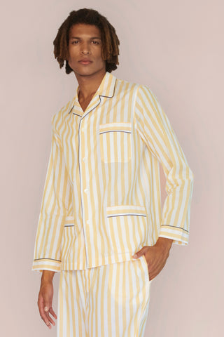 Ultra-Light Short Cotton Pajama Set - Striped - Blue, Red and Orange