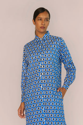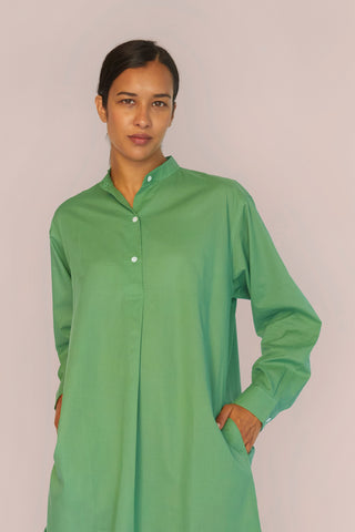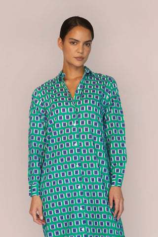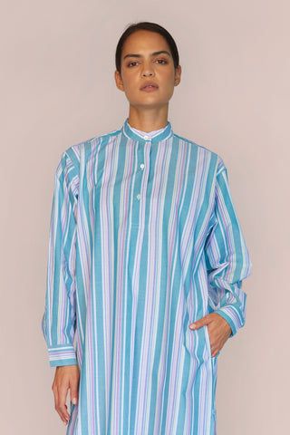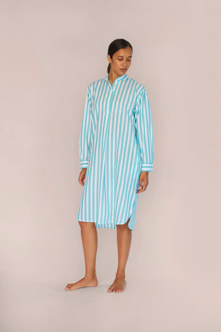 Ultra-Light Cotton Voile Nightshirt - Striped - Powder Blue and Taupe