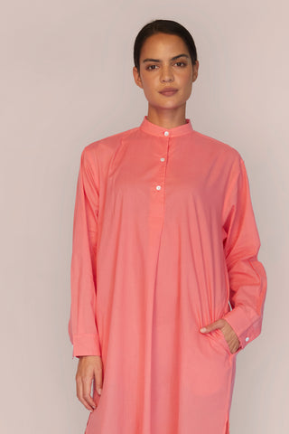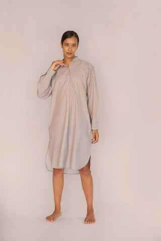 Ultra-Light Cotton Voile Nightshirt - Pinstriped - Cocoa Taupe and Navy
